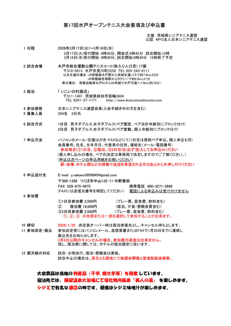 ●12月24日 第17回水戸オープンテニス大会の要項をアップしました