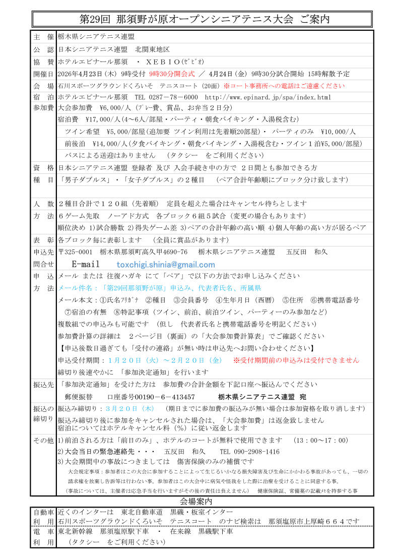 ●1月15日 「第29回那須野が原オープン大会」の要項をアップしました